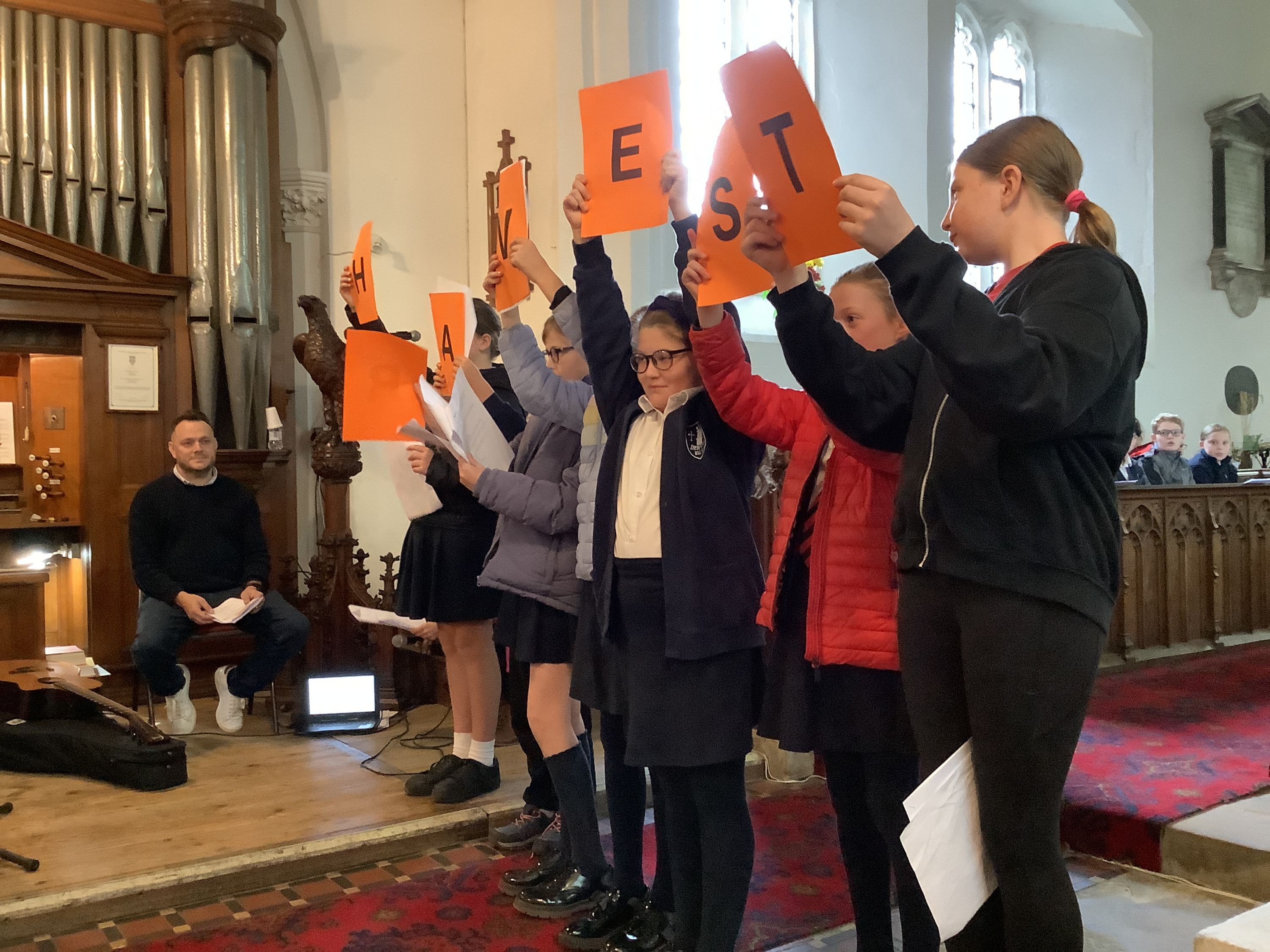 We have Worship Ambassadors (Rowan, Chase, Edith, Lorelei and Lyla) who help to organise, prepare and lead Collective Worship.