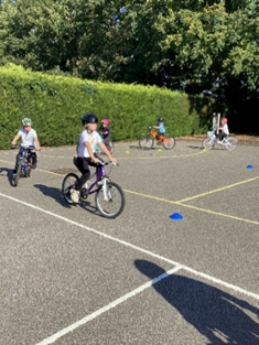 We have a stock of frog bikes for those children who do not have bikes. This allows children to hire these out if they do not have a bike at home.We engage in Bikeability Level 1 and Level 2 training each year.